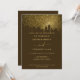 "Elegant Script Golden Glitter Sparkle Wedding Invitation". Make your dream wedding come to life with this exquisite wedding invitation card. Featuring an intricate design of cosmic gold glitter on black and dark brown background, this card is the perfect way to bring out the elegance of your special day. All elements are adjustable and customisable. Printed on premium quality cardstock, this wedding invitation is sure to make a lasting impression. With a variety of paper type, sizes and card styles to choose from, you can find the perfect fit for your wedding. Mesmerise your guests with this card and let them know that your day is special with this beautiful design wedding invitation.