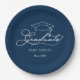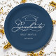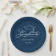 Elegant Script Grad Cap Navy Blue Graduation Paper Plate