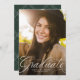 Elegant script graduate green vertical graduation announcement