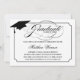 © Socialite Designs. Our elegant script "graduate" text and graduation cap, with black text on white background, add a touch of simple elegance to this graduation invitation. The back of the invitation includes text for the continuing education or milestones of your child. Easily replace our template text for your special event. All design elements can be moved, rotated resized or deleted individually.