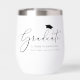 An elegant thermal tumbler to toast and celebrate the graduate. "Graduate" is written in a chic modern script with a grad cap on top. Personalise with their name, school and class year.