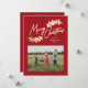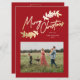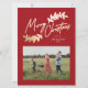 An elegant script red and gold foil branches 2 photo Merry Christmas holiday card with simple typography. Click the edit button to customise this design.