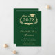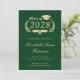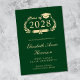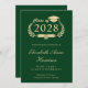 Elegant green college graduation announcement featuring "Class of" in a light gold illustration of a laurel wreath with a grad cap topper and diploma and the graduate's name in a light gold script. Add their school, major, honours or future plans.