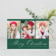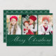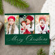 Elegant Script Green Merry Christmas 3 Photo Holiday Card