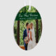 Elegant Stylish Script Our First Christmas Wedding Photo Green Ornament with Snowflakes back