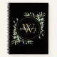 Elegant Script Greenery Chic Gold Monogram Black Notebook