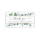 Chic, modern and simple thank you label features the words 'thank you' off-black elegant hand written script calligraphy and your name in modern typography on a white background with a stylish touch of watercolor eucalyptus greenery foliage and gold lines. Simply add your (business) name. Exclusively designed for you by Happy Dolphin Studio.