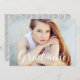 Elegant graduation announcement with "Graduate" displayed in a white script overlay. Personalise the front of the modern photo graduation announcement with your horizontal photo, name, and graduation year. The announcement reverses to display a grey and white hand-drawn herringbone pattern.