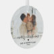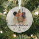 Elegant Hand Lettered "Merry Christmas" Script Family Photo Ornament. Features your favourite family photo, "Merry Christmas" calligraphy text in handwritten script, little heart motif, family name and year in black font colour on white gradient photo overlay. Easy to personalise it. Photo tip: crop your photo to square form before upload it.