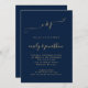 Elegant Script Initials Navy Gold QR Code Wedding Invitation