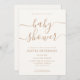 Elegant Script Ivory Tan Baby Shower Invitation. Invite your family and friends with this minimal modern wedding baby shower template. Personalise this elegant and stylish invitation with names, venue, date and time.