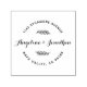 This self-inking stamp is perfect for any couple looking for a special touch for their wedding letters. This design features your first names in a rustic, hand-lettered script with your return address around the outside in a circular shape. Above and below your names, on the inside of the address, are two hand-drawn, rustic branches. To customise this design, simply click the "personalise" button and type your details into the text boxes that appear.