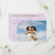 Elegant and stylish save the date card featuring a script text that says "save the date." One photo in the font and one on the back. The background is lilac.