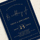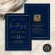 Elegant Script Line QR Code Navy Blue Gold Wedding Invitation