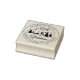This elegant "Merry Christmas" rubber stamp features a forest with custom family name and address.