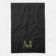 Elegant Script Metallic Black and Gold Monogram Tea Towel