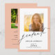 This elegant graduation party invitation offers two photo frames, one on the front and a second on the back. The design is accented with stylish handwriting style text and a light orange coloured border. Personalise the backside with your party invitation details.