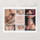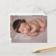 Modern birth announcement with one photo on the front and six on the back, accompanied by elegant white calligraphy script. All the colours can be customised. It can be personalised with your own message and baby stats.