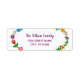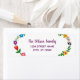 Stylish custom return address label for a family (can be customized for one person as well), with a floral motif around the left and right edges, and with an elegant script for the family name or person's name.