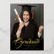 Stylish gold foil graduation announcement cards, featuring elegant calligraphy script with modern text in real foil (colour options are gold, silver and rose) and your graduate photo. The back of the card offers personalised text spaces for information about the graduation or can be reworded to make the card into a grad party invitation. White writing on regal grey on the back of the card or easily customise the background to a colour of your choice. To see more items like this, visit my store here at "www.Zazzle.com/LakeViewCardCo". Thanks