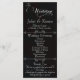 This romantic design features an elegant black background with the wedding ceremony details & thank you on the front, the wedding party members, and heart monogram on the back. Available in several colors to coordinate with your wedding theme. Designed to coordinate with the "Romantic Scroll Hearts & Calligraphy" Wedding Collection.