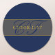 Elegant Script Monogram Dark Navy Blue Grey & Gold Classic Round Sticker