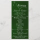 This romantic design features an elegant emerald green background with the wedding ceremony details & thank you on the front, the wedding party members, and heart monogram on the back. Available in several colours to coordinate with your wedding theme. Designed to coordinate with the "Romantic Scroll Hearts & Calligraphy" Wedding Collection.
