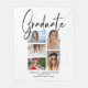 Elegant Script Multi Photo Graduation Graduate Fleece Blanket features five of your favourite photos of your college or high school graduate with the swirly modern black calligraphy script overlay "Graduate". Simple, stylish and classy graduation keepsake gifts. Created by ©Evco Studio www.zazzle.com/store/evcostudio