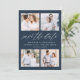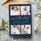 Announce your upcoming nuptials in style with our Elegant Script photo save the date card. The elegant save the date cards display 4 of your favourite engagement photos framed in navy with "save the date" in a white, modern calligraphy script. Personalise the card by adding your names, wedding date, and wedding location. The minimalist save the date card reverses to a solid navy background or a colour of your choice.