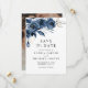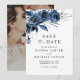 Elegant Script Navy Blue Floral Photo Wedding Save The Date