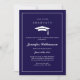 Celebrate in style with our timeless navy blue and white graduation party invitation, featuring frame, blue background, elegant scripted name & date, and graduation cap. Perfect for marking this significant milestone, this invitation promises to set the tone for a sophisticated and memorable evening. Add a personal touch by uploading your photo.