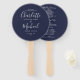 Elegant Script Navy Blue Wedding Program Round Hand Fan