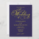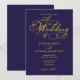 Elegant Script Navy Blue Yellow Wedding Invitation