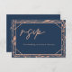 A beautiful and simplistic navy and rose gold wedding RSVP, with an elegant and abstract rose gold floral border. Customise the front with your names, and the back with your own wording and meal choice options.