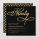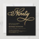 Elegant Script Ninety Black Gold 90th Birthday Invitation