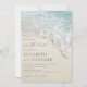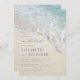 Perfect for destination weddings, this elegant summer beach wedding invitation with classy beautiful handwriting script features a close-up photo of a beach shoreline with an ocean wave and seafoam.