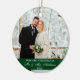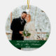 Elegant Script Our First Christmas Wedding Photo Green Ornament with Snowflakes back