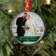 Elegant Script Our First Christmas Wedding Photo Green Ornament