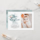 Watercolor eucalyptus branches and summer garden flowers baptism photo invitation
