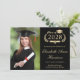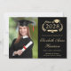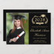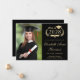 Elegant black and gold college graduation announcement featuring "Class of" in an illustration of laurel wreath incorporating a grad cap topper and diploma, a photo of the graduate and their name in a formal script. Add their school, major, honours or future plans in classic serif typography.