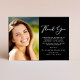 Elegant black graduation thank you card featuring the graduate's photo, "Thank You" in a stylish white script, your personalised thank you message and their name, school and class year in simple white typography.
