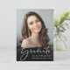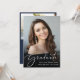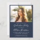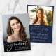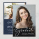 Celebrate your graduate's achievements with this elegant blue graduation party invitation. The grad's favourite photo fills the front of the card with "Graduate" overlayed on top in a chic white script; underneath, add their name, school and class year. On the back, add an additional photo and your graduation party details in simple white lettering.