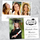Formal college graduation announcement featuring "Class of" in an illustration of laurel wreath, a grad cap topper and a diploma, a photo of the graduate and their name in an elegant script. Add their school, major, honours or future plans in classic serif typography. On the back, add 3 additional photos and your personalised message.