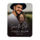 This elegant gradient photo save-the-date wedding magnetic card features crisp white script font that says "Save the Date," along with space for your names, wedding date, and location. To customise this design, simply click on "Personalise This Design," enter your information, and Zazzle will take care of the rest.
