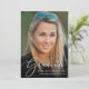 Celebrate your graduate's achievements with this elegant graduation announcement and party invitation. Her photo fills the front, overlayed with "Graduate" in a stylish white script; underneath, add her name, school and class year. On the reverse side, add an additional photograph and the graduation party details.