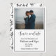 This elegant script photo save the date card is perfect for those of you who prefer the minimalist look. The black and white design features your favourite photo or formal engagement photo. The words Save the Date and the bride and grooms names are done in a beautiful, romantic script typography. The rest is done in a simple typeface to go along with the minimalist theme. Update the card with your information using the easy template provided. Reverse side of the card has an elegant black and white leaf pattern.