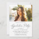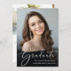 Celebrate your graduate's achievements with this stylish graduation announcement and party invitation. Their photo fills the card with "Graduate" overlayed on top in a stylish white script. Add their name, school and class year in modern white lettering. On the reverse side, add an additional photograph and your graduation party details.