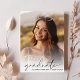Elegant graduation party invitation featuring the grad's photo overlayed with "graduate" in a modern script and their name and class year in simple typography. On the reverse side, add an additional photo and the grad party details.