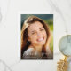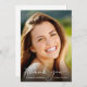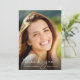 Elegant graduation thank you card featuring the graduate's photo overlayed with "thank you" in a stylish white script and their name, school and class year in simple white typography. On the reverse side, personalise a thank you message and add the grad's name in a signature-like script.