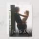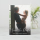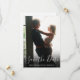 This simple, modern script photo save the date card features your special photo overlayed with a script save the date above your names, date and venue in white text.